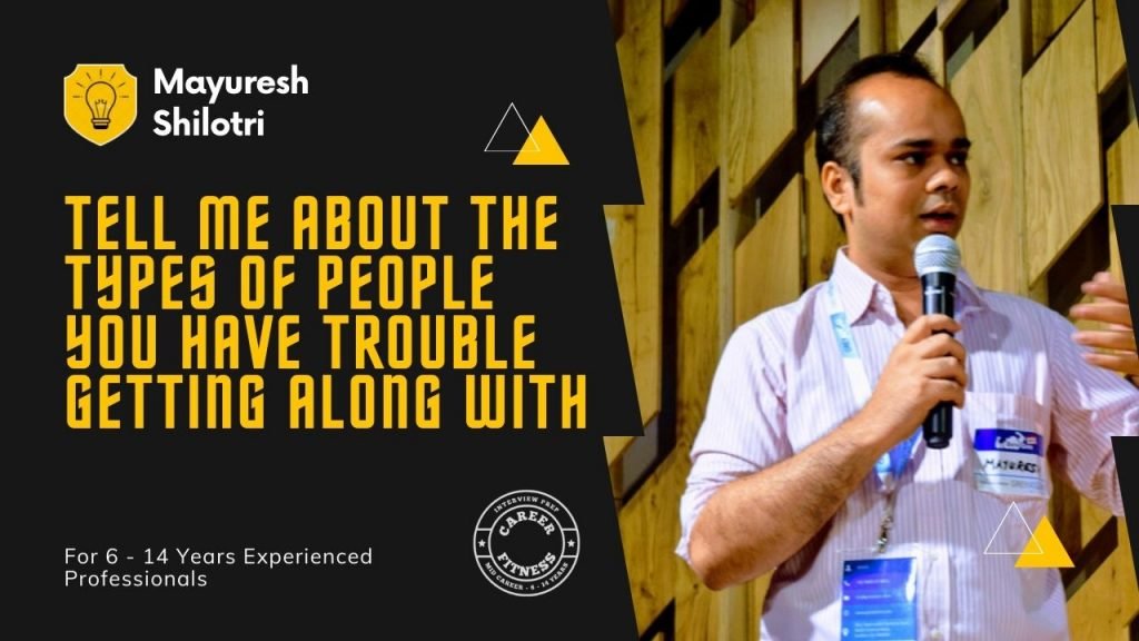 You’re going to have this variant of this particular question, and essentially it is about trying and understanding if your personality has really any kind of rough edges or if you are repulsive or if you just blurt out an answer more. (Career-limiting move). This is typically a question where even your interview can get aborted.